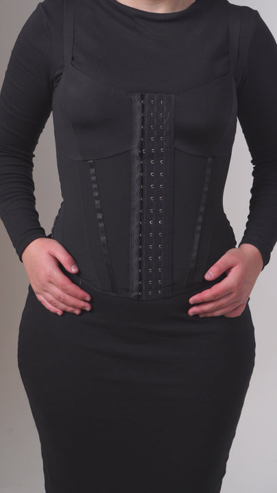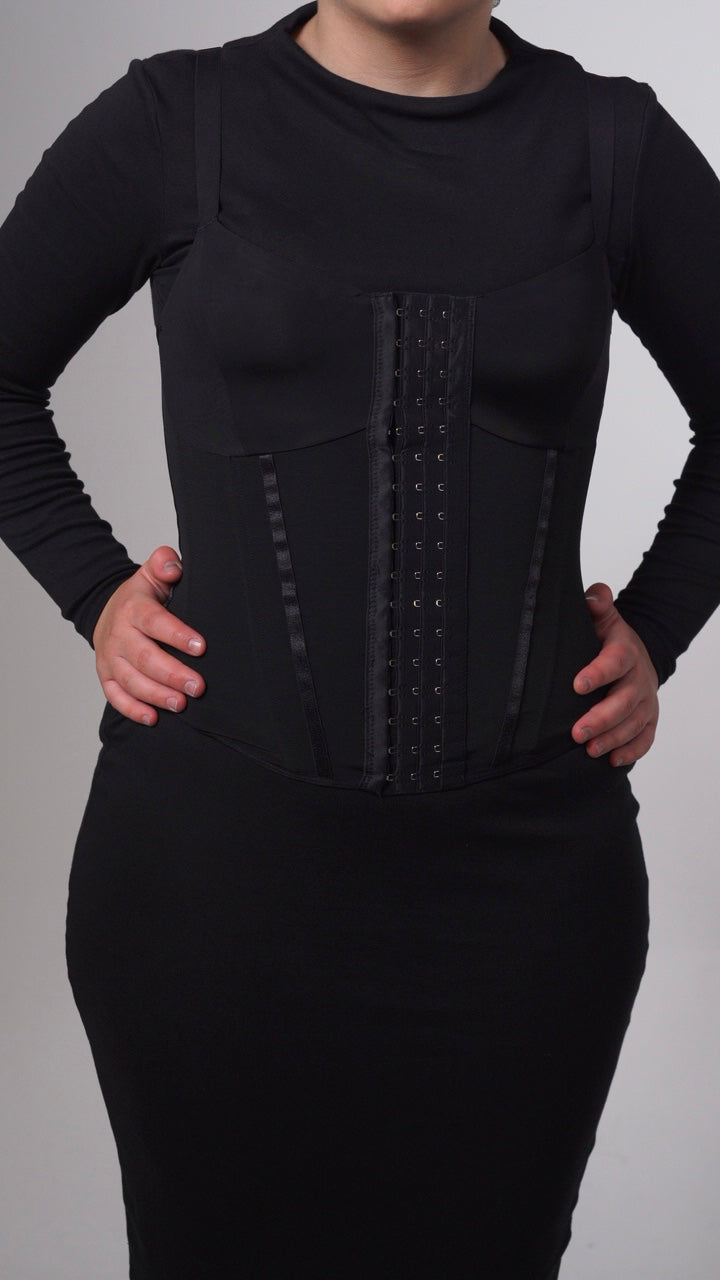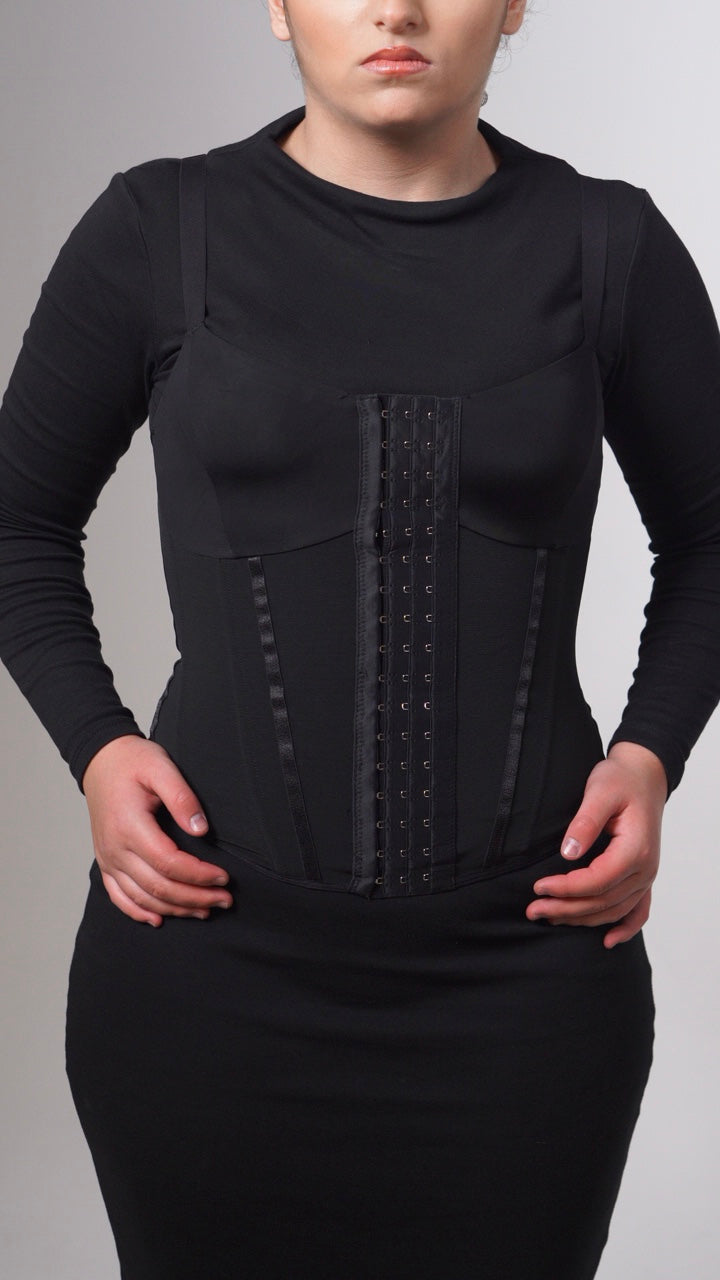 مناسب للأطوال القصيرة اقل من ١٥٥ بعطي ترتيب وشد للبطن والصدر والظهر والخصر لكن إذا عندك جوانب(خواصر) ما تختاريه لأنو مداه قصير عالخواصر.