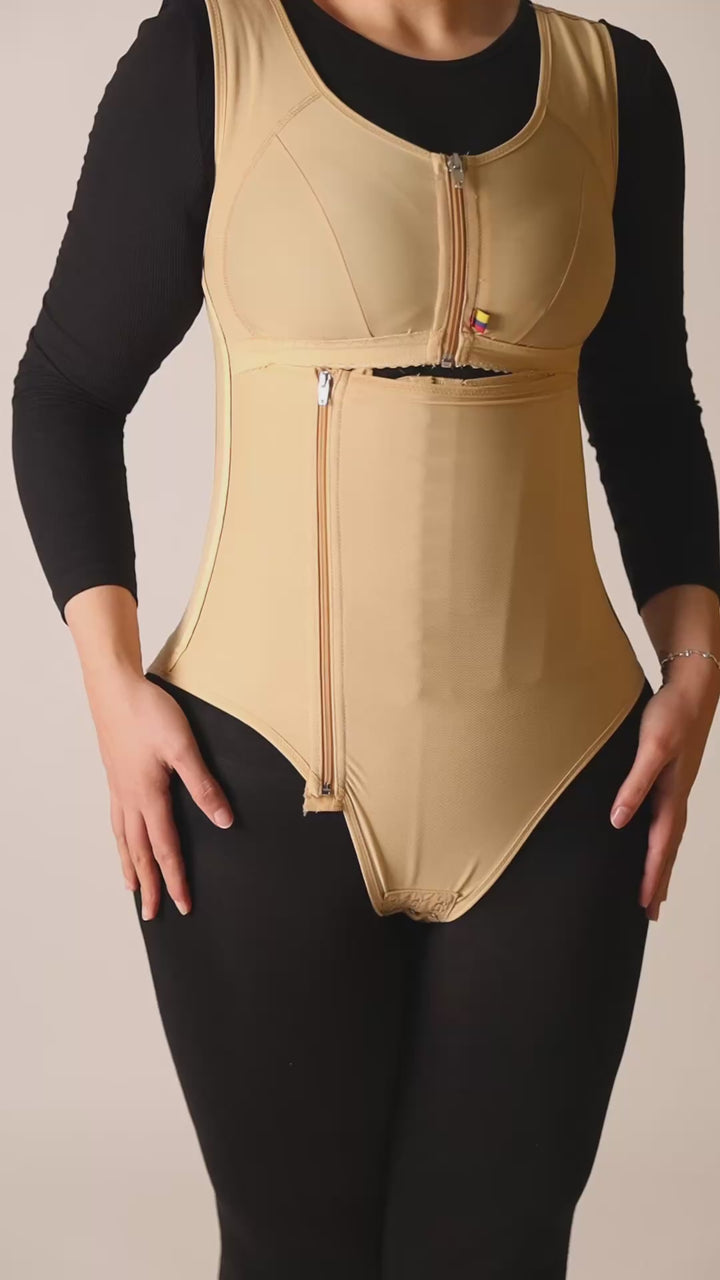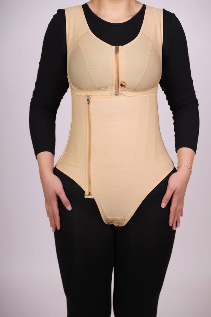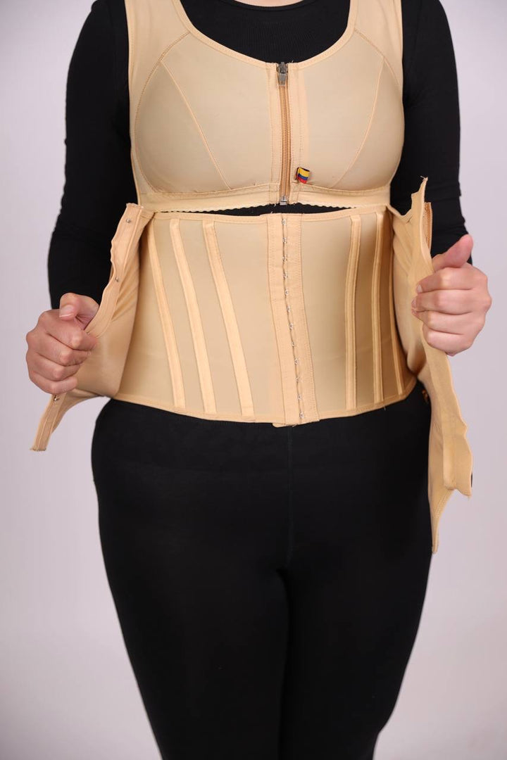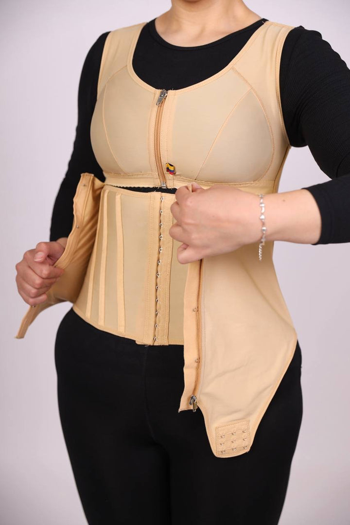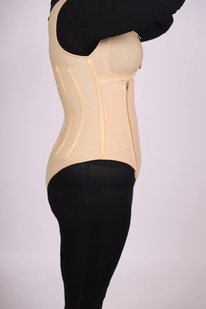 مزود بكبسات سفلية مخفية لسهولة الدخول إلى الحمام دون الحاجة لنزع المشد بالكامل.